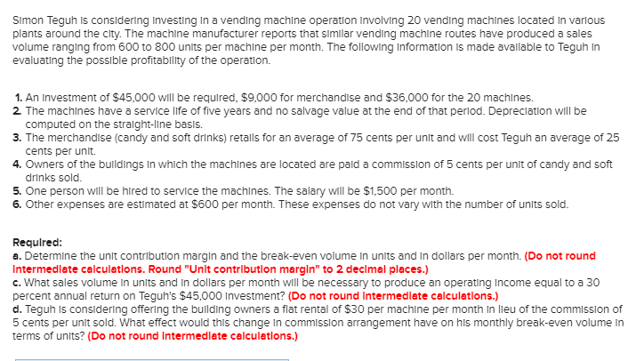 Solved Simon Teguh Is Considering Investing In A Vending Chegg Com