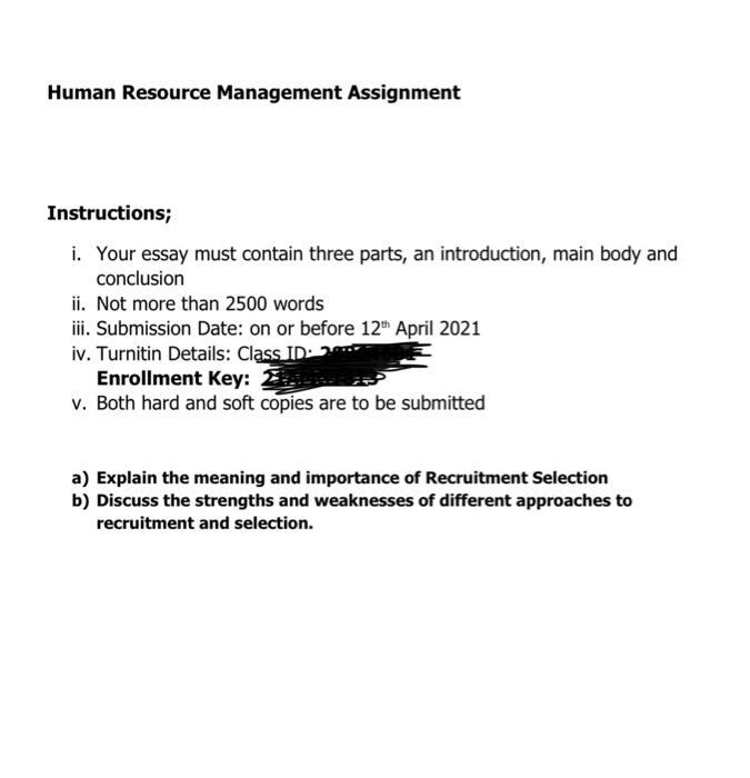 Solved Human Resource Management Assignment Instructions I Chegg Com